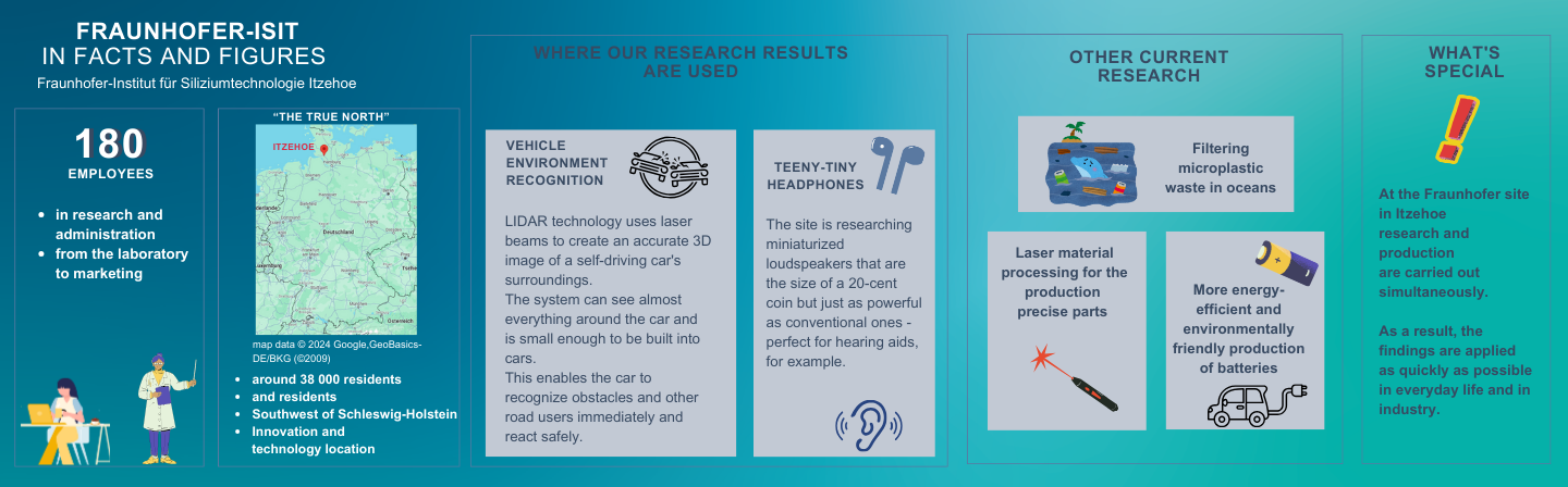 Our on-site trainers work in the middle of the action themselves. Practical skills, specialist knowledge, soft skills - you get an "all-inclusive" package. You will also learn the theory for your future profession at the vocational school (RBZ Kreis Steinburg in Itzehoe) and make new contacts in the process. Internships can also take place at partner companies and cooperation partners outside of the region to give you a broader perspective of the opportunities at ISIT. After your apprenticeship, you will have excellent opportunities with Fraunhofer know-how under your belt.